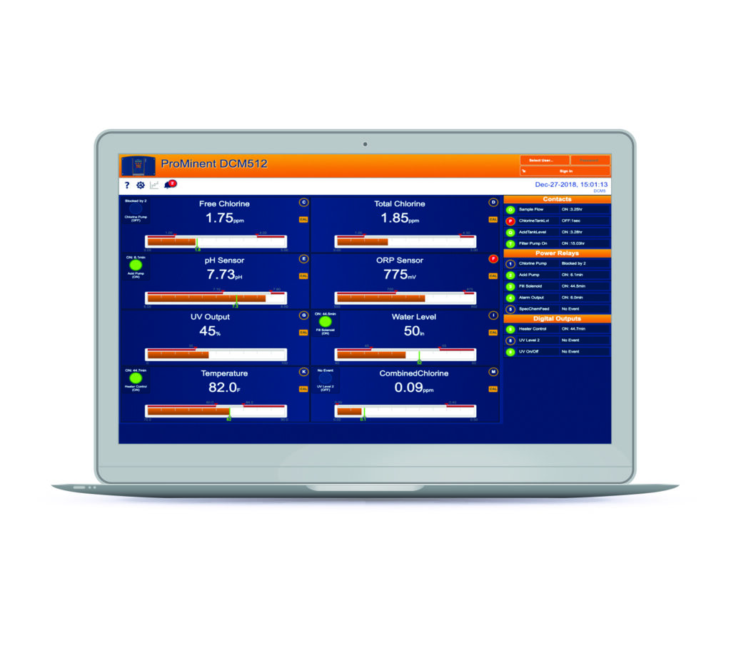 Advanced water chemistry controllers that continuously monitor and automatically adjust chlorine and pH levels. ProMinent DCM systems reduce manual handling, stabilize water chemistry, and support consistent health department compliance.